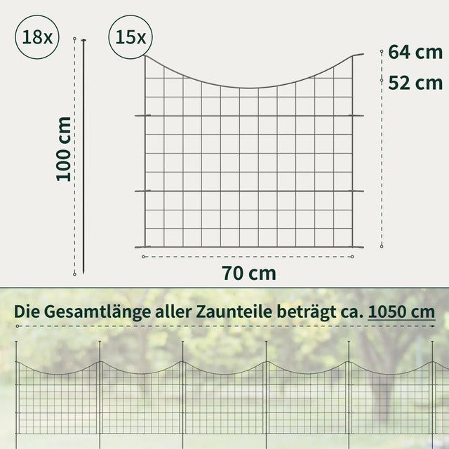 Teichzaun-Set - Unterbogen / Grün mit Form / 15x