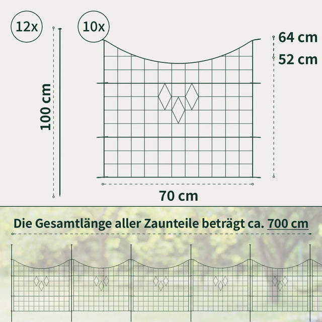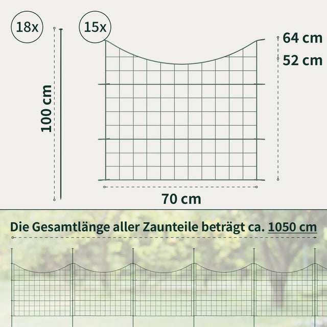 Teichzaun-Set - Oberbogen / Grün mit Form / 10x