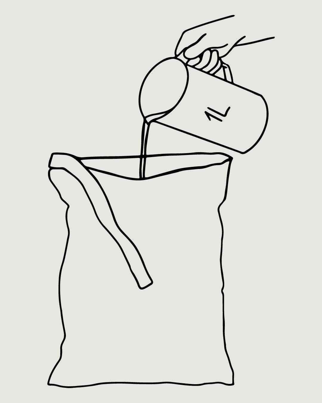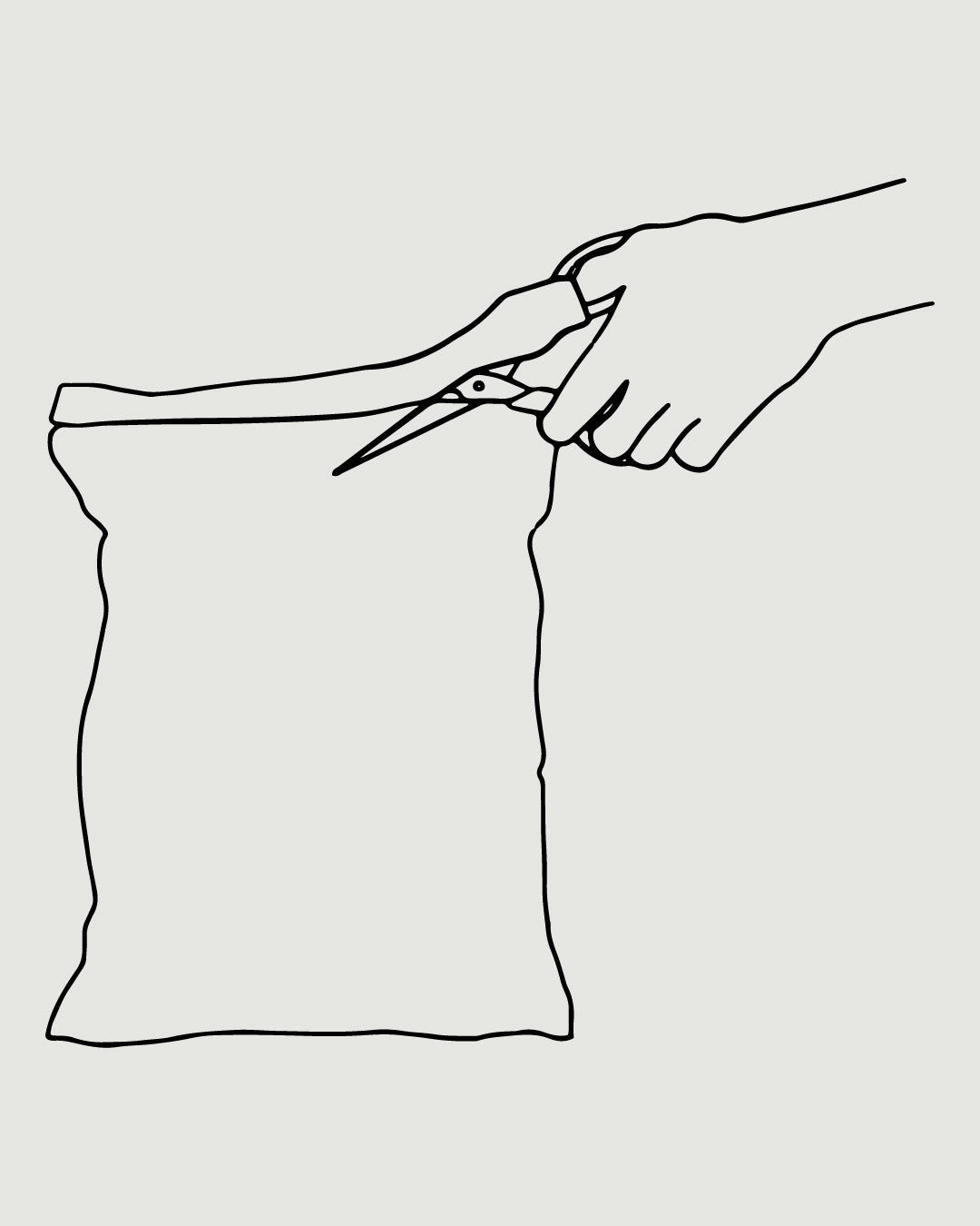 Schneide den, im Lieferumfang enthaltenen Beutel mit den Kokosziegeln an der Oberkante vorsichtig auf.