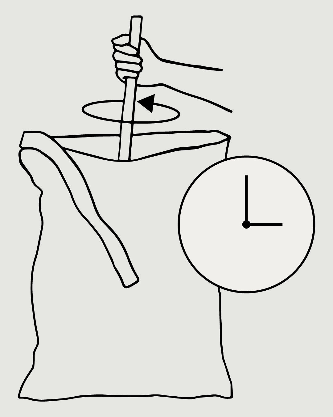 Warte etwa drei Minuten, bis das Wasser in der Erde versickert ist und rühre anschließend, bis sich die Erde ausreichend mit dem Wasser vermischt.