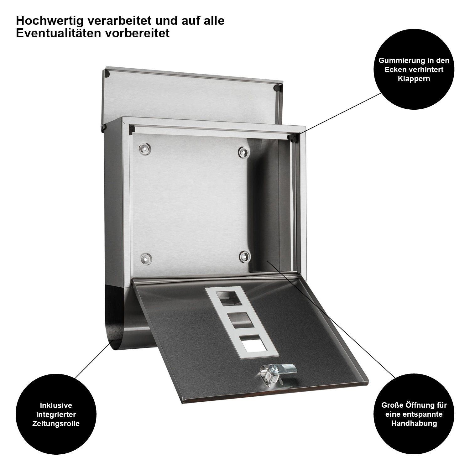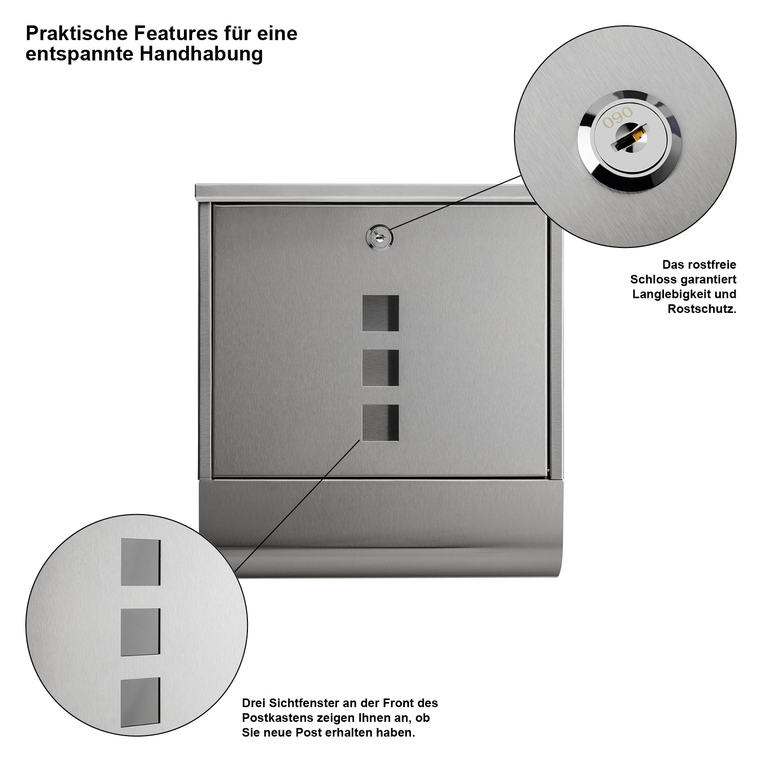 Unser Briefkasten überzeugt nicht nur durch sein modernes Design, sondern auch durch seine praktischen Eigenschaften.