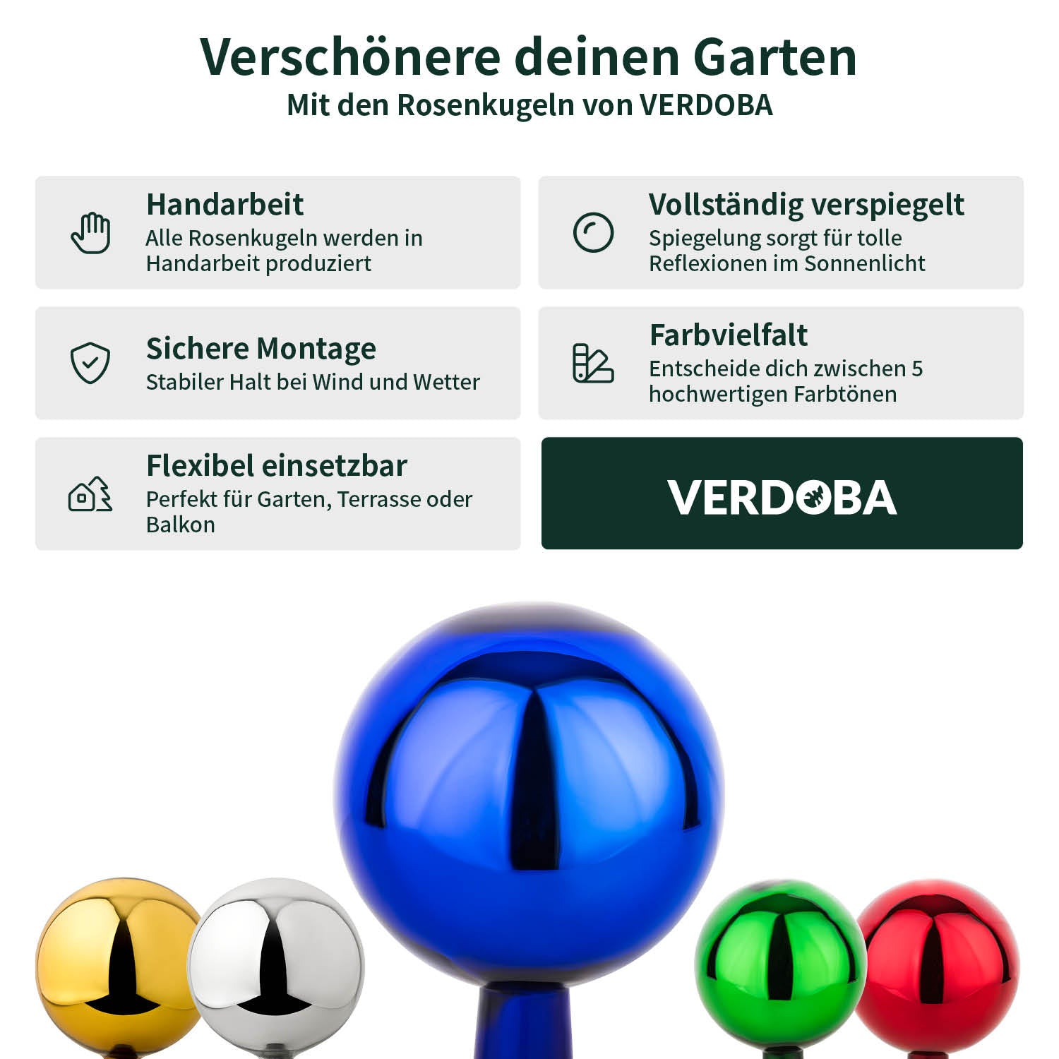 Setze farbliche Akzente in deinem Außenbereich mit unseren Rosenkugeln.