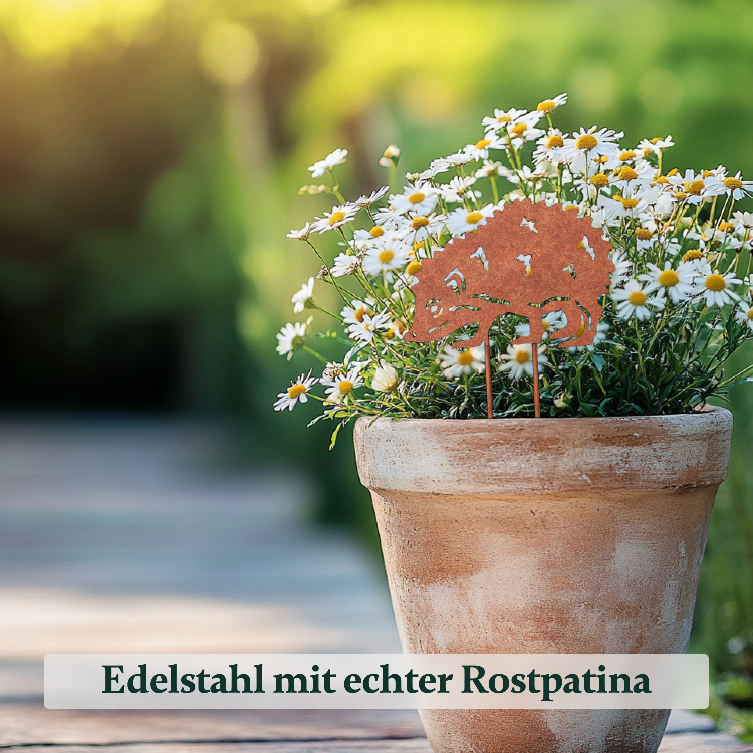 Unsere Gartenstecker in Rost- oder Silber-Optik schaffen ein naturnahes Ambiente bei dir zuhause im Garten, dem Balkon oder dem Hauseingang.