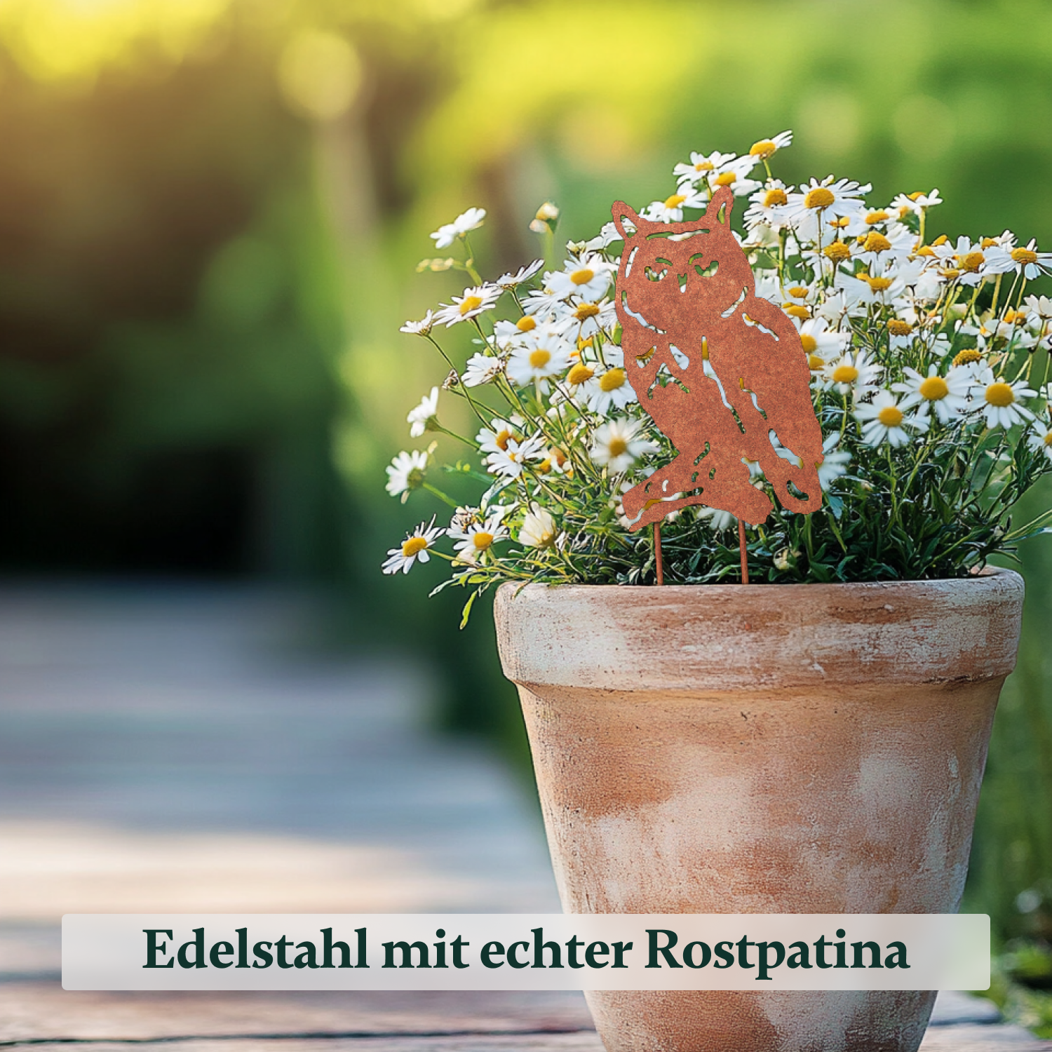 Unsere Gartenstecker in Rost- oder Silber-Optik schaffen ein naturnahes Ambiente bei dir zuhause im Garten, dem Balkon oder dem Hauseingang.