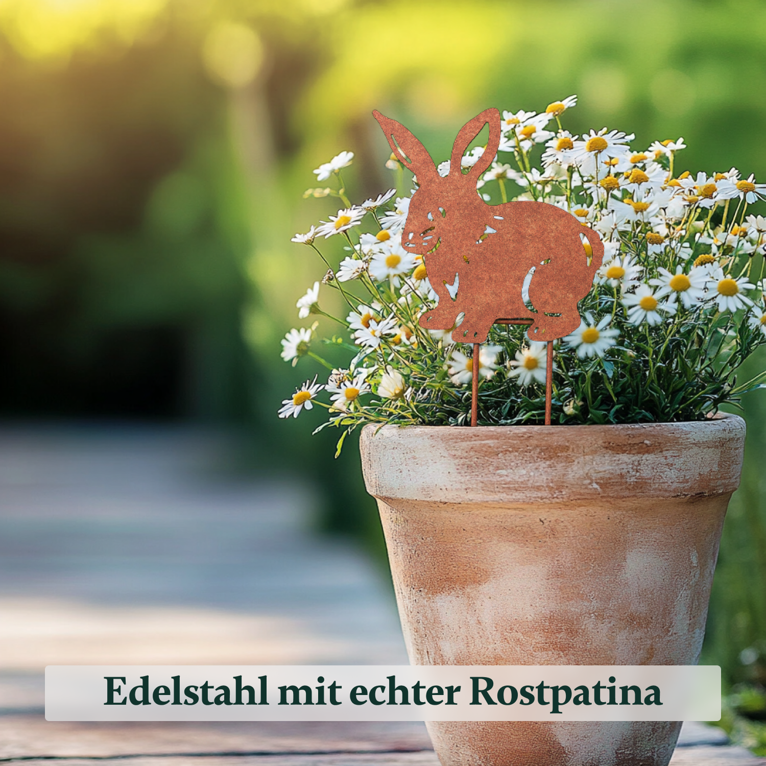 Unsere Gartenstecker in Rost- oder Silber-Optik schaffen ein naturnahes Ambiente bei dir zuhause im Garten, dem Balkon oder dem Hauseingang.