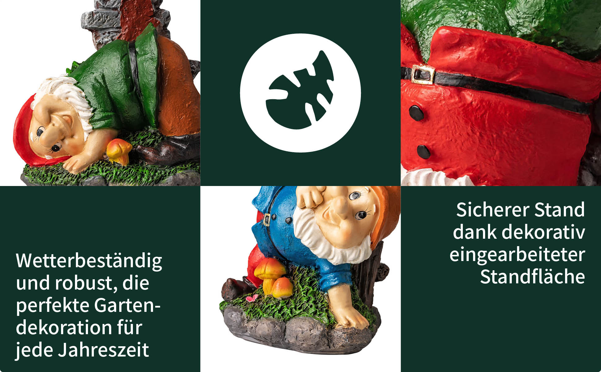 Setzte mit unseren 4 Gartenzwergen witzige Akzente in deinem Garten oder auf deiner Terrasse.